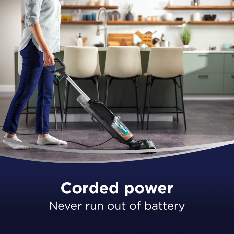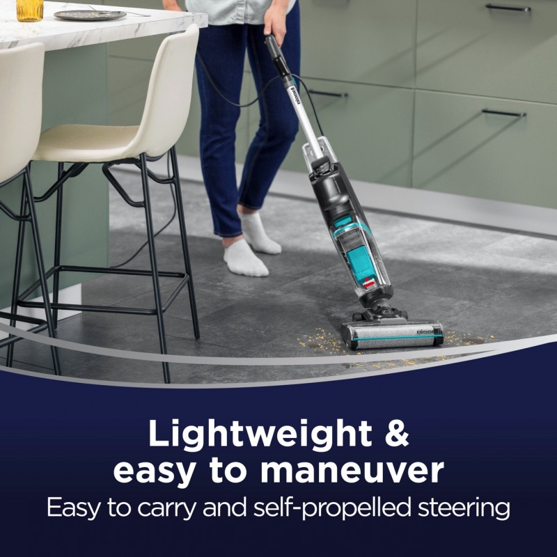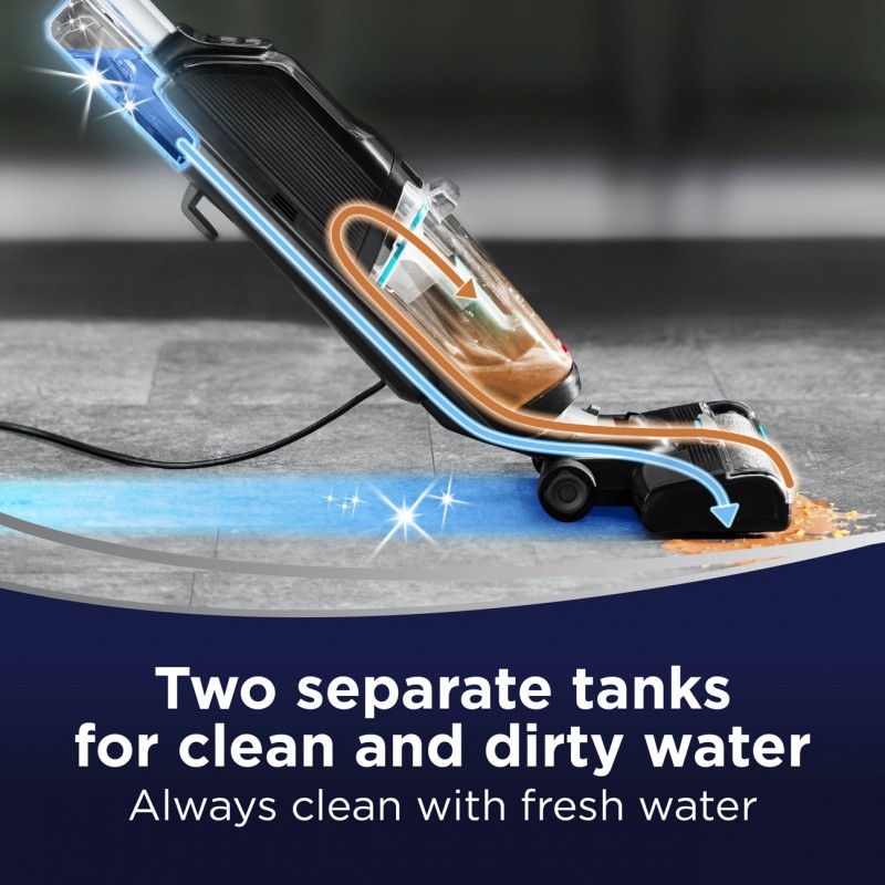 جاروبرقی بدون کیسه و چندکاره با قابلیت جاروکشی خشک، شستشو و خشککن همزمان● مجهز به موتور دیجیتال کممصرف و فیلتر HEPA قابل شستشو● سیستم Dual-Tank با مخزن آب تمیز و کثیف جداگانه● مناسب سطوح سخت (پارکت، سرامیک، سنگ) و فرش کمپرز
