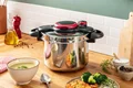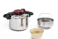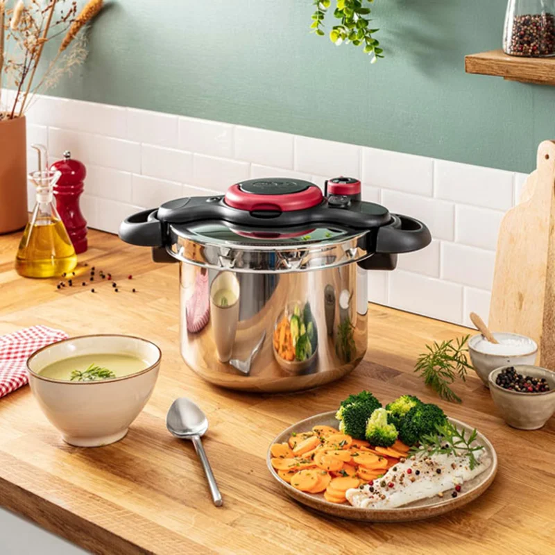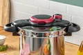معرفی زودپز تفال مدل P4620768با زودپز تفال مدل P4620768 گنجایش 6 لیتری در آشپزخانه خلاقیت به خرج دهید و غذاهای خوشمزه را در نصف زمان آماده کنید. این زودپز زیبا و باکیفیت دارای سیستم بازشو با یک دست و 5 سیستم ایمنی است که استفاده از آن را ایمن و آسان می کند. به سادگی مواد خود را داخل زودپز بریزید، مایع را اضافه کرده و درب آن را ببندید تا غذا بپزد. درب باعث ایجاد فشار می شود و دما را بالا می برد تا غذا سریع تر پخته شود، در حالی که مایع در حال جوش بخار ایجاد می کند تا نتایج لطیف و لذیذی به دست آید.با زودپز tefal P4620768 می توانید بخارپز کنید، مواد را تفت دهید و سرخ کنید، روی حرارت ملایم بپزید، بجوشانید و انواع سوپ، خورشت های متنوع و دسرهای خوشمزه را درست کنید. از همه مهم تر غذای پخته شده توسط این زودپز تا 80% ویتامین C بیشتری را نسبت به پخت سوپ و خورشت در قابلمه تفال حفظ می کند. از آنجایی که شرکت تفال یکی از برند های بسیار معروف و شناخته شده است برای ساخت محصولات خود همه استانداردها را رعایت می کند و این زودپز را نیز به ۵ سیستم امنیتی مجهز کرده که از انفجار و ترکیدن دستگاه جلوگیری می کند.کاربردهای این محصولپخت حبوبات: انواع حبوبات را بدون نیاز به خیساندن از قبل به خوبی پخته و نرم می کند.پخت گوشت: گوشت های سفت را در مدت زمان کوتاه نرم و خوشمزه کنید.پخت سوپ و خورشت ها: انواع سوپ و خورشت را در کمترین زمان تهیه کنید.پخت برنج: برنج را به صورت کته یا آبکش در زودپز بپزید.پخت دسر: بعضی از دسرها مانند فوندانت های شکلاتی که به نظر می رسد ساعت ها طول می کشد را می توانید در زودپز درست کنید.پخت بخارپز: مواد غذایی را جهت پخت سالم تر و حفظ طعم و عطر اصلی به کمک بخار بپزید.tefal pressure cooker p4620768 dominokala 0 3مشخصات زودپز 6 لیتری تفال مدل P4620768اگر به دنبال یک زودپز باکیفیت، ایمن، زیبا با قابلیت پخت سریع غذاها هستید، زودپز 6 لیتری تفال مدل P4620768 می تواند انتخاب مناسبی برای شما باشد. پخت دو برابر سریع تر با فشار بالا، صرفه جویی در وقت و کاهش مصرف انرژی را به دنبال دارد. ظرفیت 6 لیتری این زودپز آن را برای خانواده های پرجمعیت و یا مهمانی ها ایده آل کرده است. گفتنی است که وزن این محصول نسبت به زودپزهای معمولی 30 درصد سبک تر بوده تا حمل، جا به جایی و استفاده از آن راحت تر باشد.بدنه و درب این زودپز از استیل ضد زنگ بادوام ساخته شده که می توانید سال ها از غذاهای خوشمزه لذت ببرید. دسته زودپز از جنس باکالیت بوده و به سیستم آسان بازشو مجهز شده که به راحتی با یک دست باز می شود. این دسته ها در برابر حرارت گرم نشده و هرگز تغییر شکل نمی دهند. بر روی درب دسته ای جهت حمل و جا به جایی آسان تر طراحی شده است.لوازم همراهزودپز تفال مدل P4620768 دارای یک سبد بخار پز از جنس استیل ضد زنگ بوده تا دچار زنگ زدگی نشود. با این سبدمی توانید انواع مواد غذایی نظیر کلم بروکلی، هویج، مرغ، لوبیا سبز و غیره را بخارپز کرده و غذای رژیمی و سالمی را نوش جان کنید