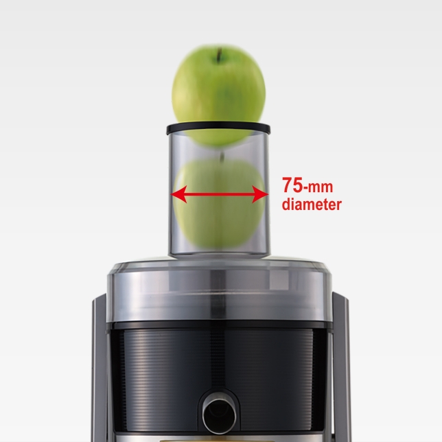یکی از ویژگیهای مهمی که برای انتخاب دستگاه آبمیوهگیری باید به آن توجه کنید، اندازهی قطر دهانهی ورودی دستگاه است. آبمیوهگیری MJ-DJ31 با قطر دهانهی 7.5سانتیمتری بهراحتی میتواند یک میوه کامل مانند سیب را از خود عبور دهد و برای گرفتن آبمیوهها نیازی به خردکردن آنها به قطعات کوچکتر نیست.