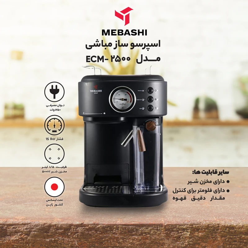 اسپرسوساز و کاپوچینو ساز نیمه اتوماتیک مباشی مدل ME-ECM2500 یکی از جدید ترین محصولات این برند بوده که به تازگی وارد بازار شده این اسپرسوساز با دارا بوده مخزن شیر قابل جداسازی بسیار کار آمد بوده و نیاز بازار از این اسپرسوسازها را برطرف خواهد کرد. اسپرسوساز مباشی مدل ME-ECM2500 با دارا بودن 1250 وات قدرت و 15 بار قدرت بخار همچنین مخزن شیر 500 میلی لیتر و همچنین مخزن آب 1.5 لیتر انتخاب بسیار مناسبی برای کاربری خانگی و کافه های کوچک میباشد. شما کافیست با فشار دادن تنها یک دکمه نوشیدنی مورد علاقه خود را تهیه کنید این اسپرسوساز قادر است تا نوشیدنی های مختلفی همچون اسپرسو ، کاپوچینو و لاته را به راحتی تهیه و برای شما سرو کند